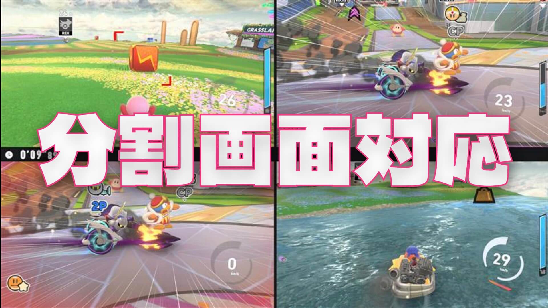 カービィのエアライダーでは1台で4人まで画面分割で遊べる