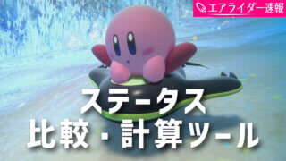 便利ツール 【ライダー×マシン】補正ステータス比較ツール(仮)【差分】 カービィのエアライダーの各ライダー・各マシン搭乗時のステータス比較・計算ツールです。ライダーとマシン... 2025.12.07 便利ツール攻略
