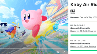 雑談 【朗報】カービィのエアライダー、メタスコア80に上昇!!!! カービィのエアライダーのメタスコアが80まで上昇したと話題に。レビューサイト「Metacritic」... 2025.12.04 雑談
